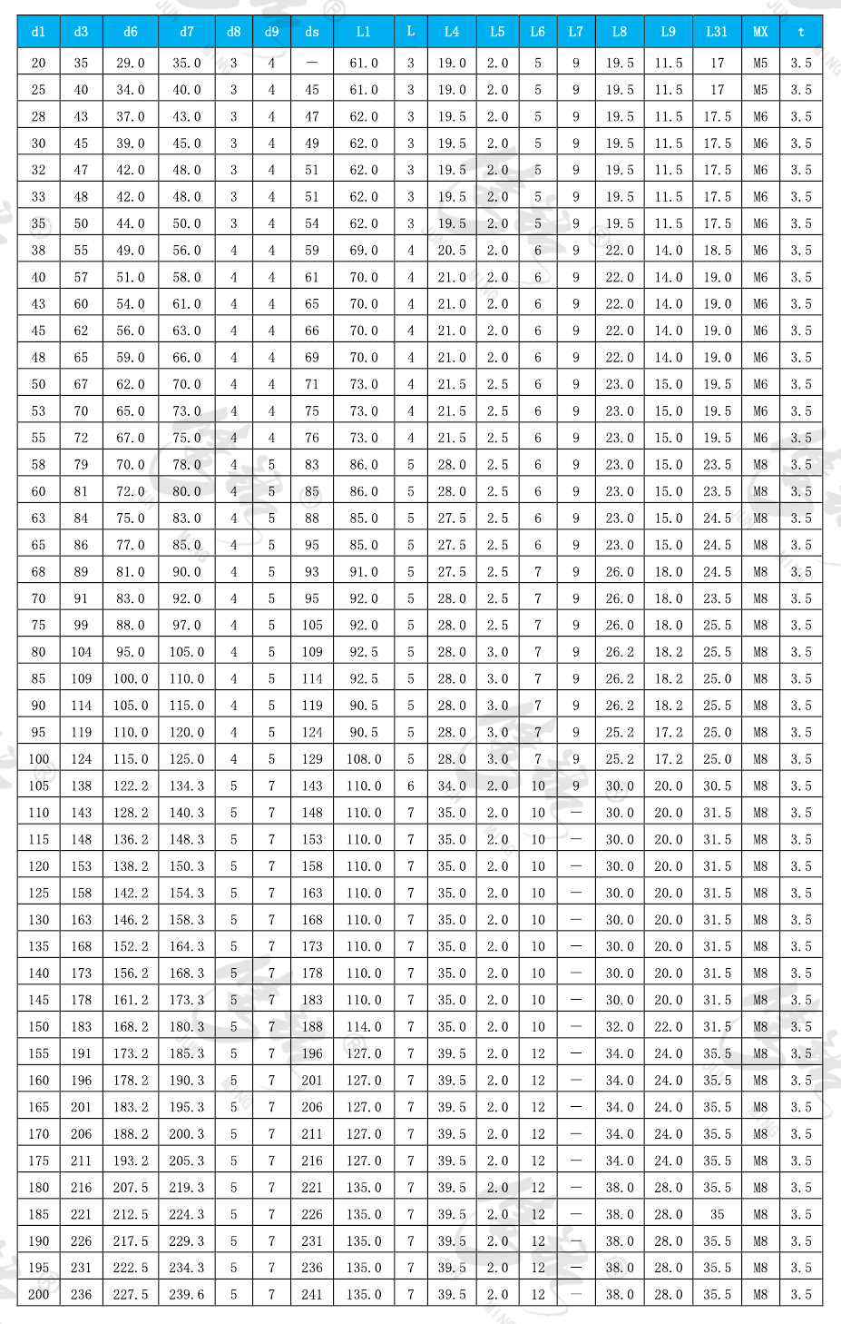 具有與“M7N”系列同樣設計性能,除驅動座的安裝長度外,其它安裝尺寸(d<100mm)符合 DIN 24960 標準。