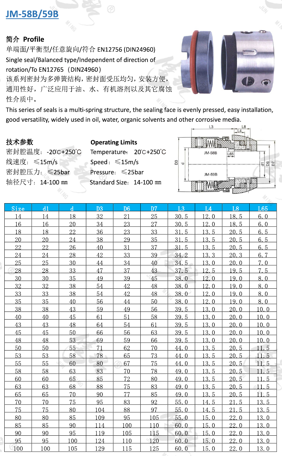 該系列密封為多彈簧結(jié)構(gòu),密封面受壓均勻,安裝方便,通用性好,廣泛應(yīng)用于油、水、有機溶劑以及其它腐蝕性介質(zhì)中。