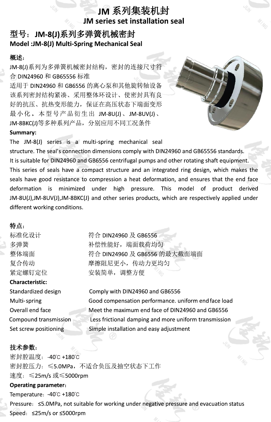 JM-8(J)系列為多彈簧機械密封結(jié)構(gòu),密封的連接尺寸符合DIN24960和GB65556標(biāo)準(zhǔn)